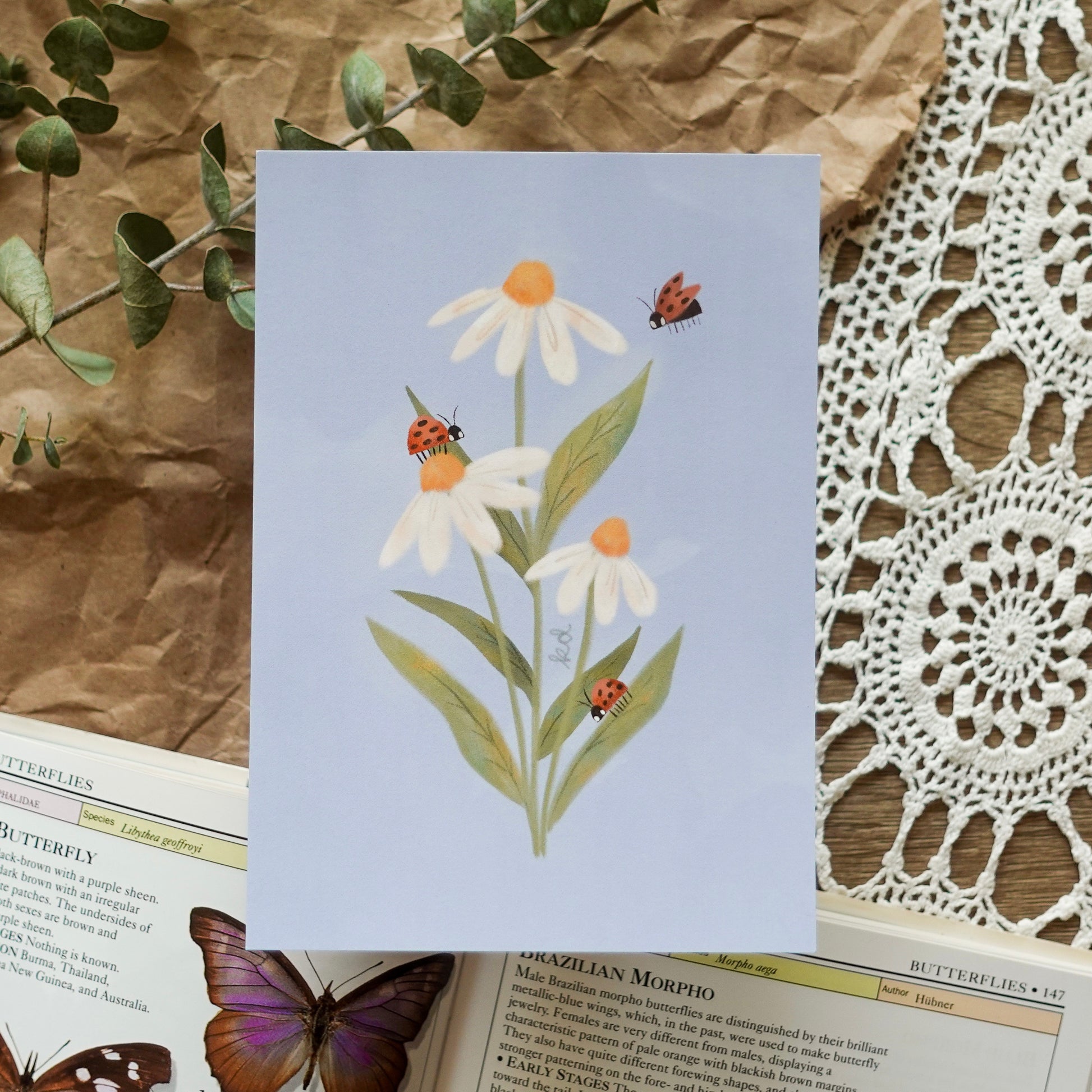Daisies & Ladybugs - Postcard / Mini Art Print