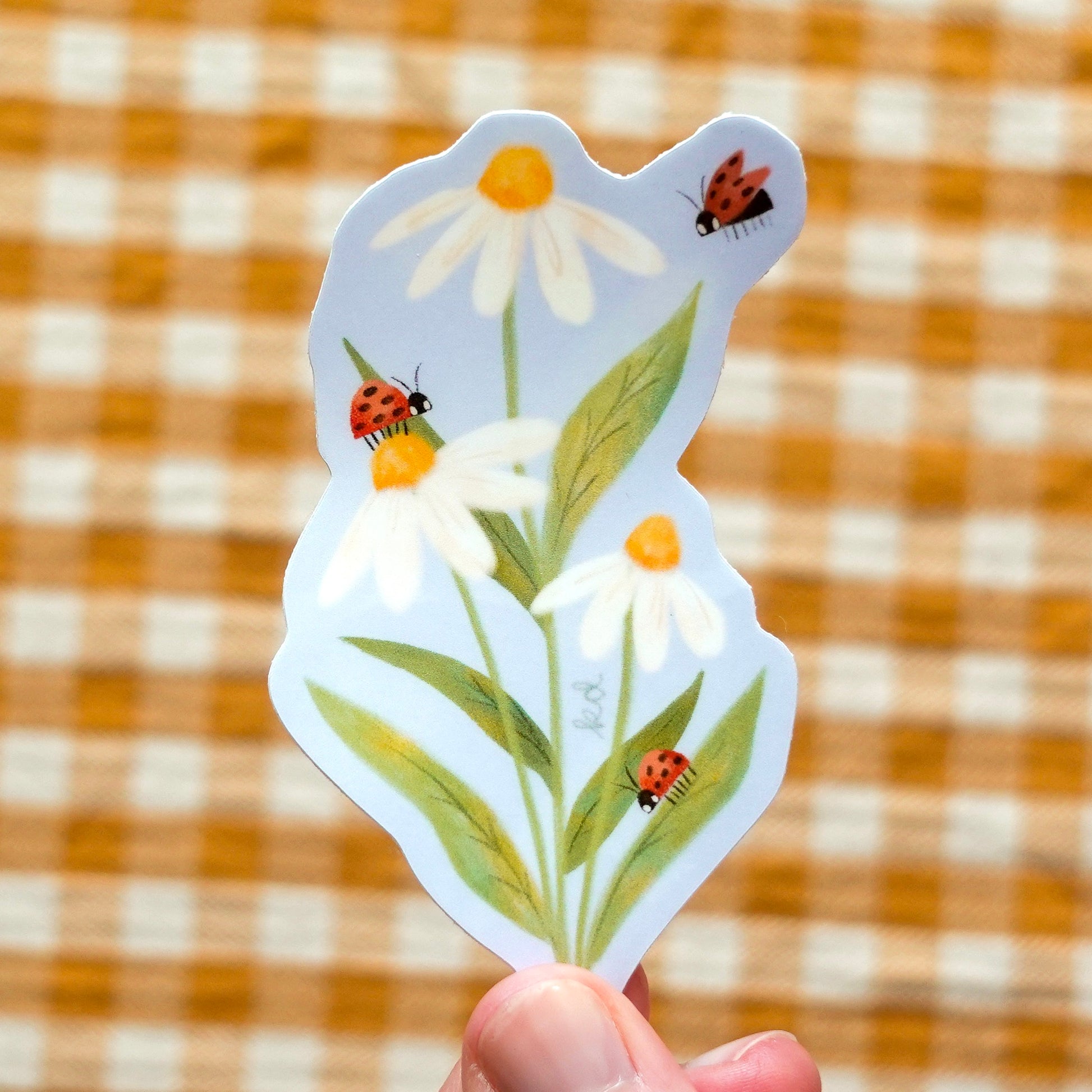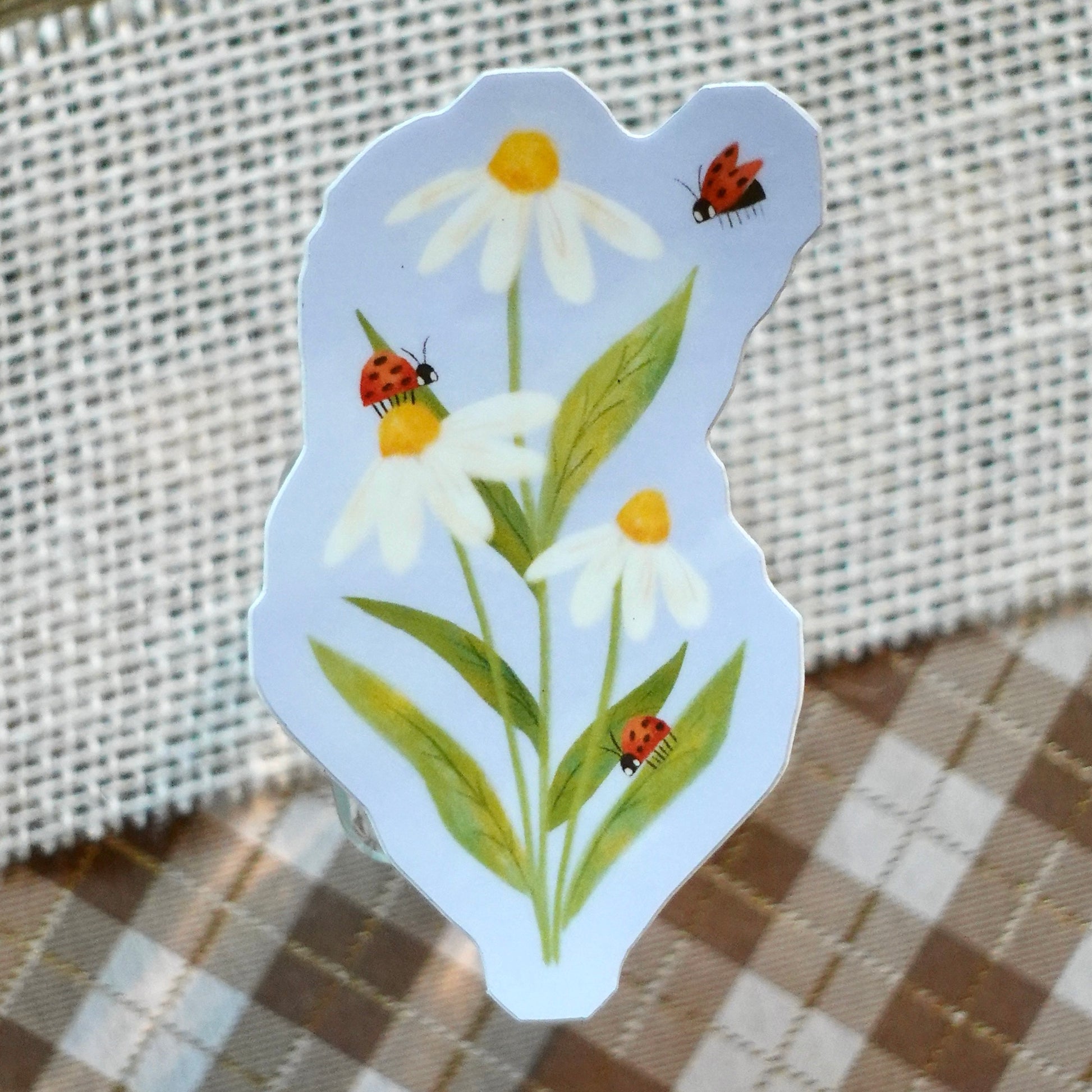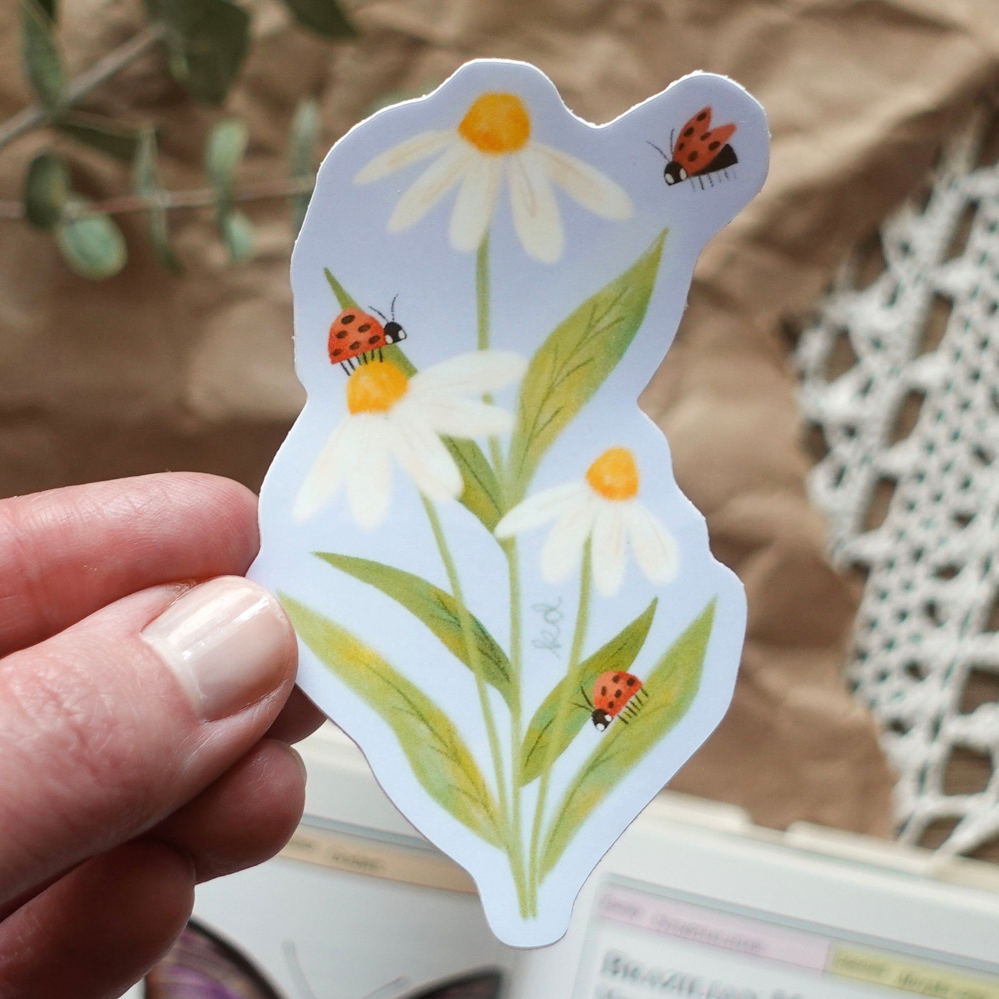 Daisies & Ladybugs - Floral Die Cut Vinyl Sticker