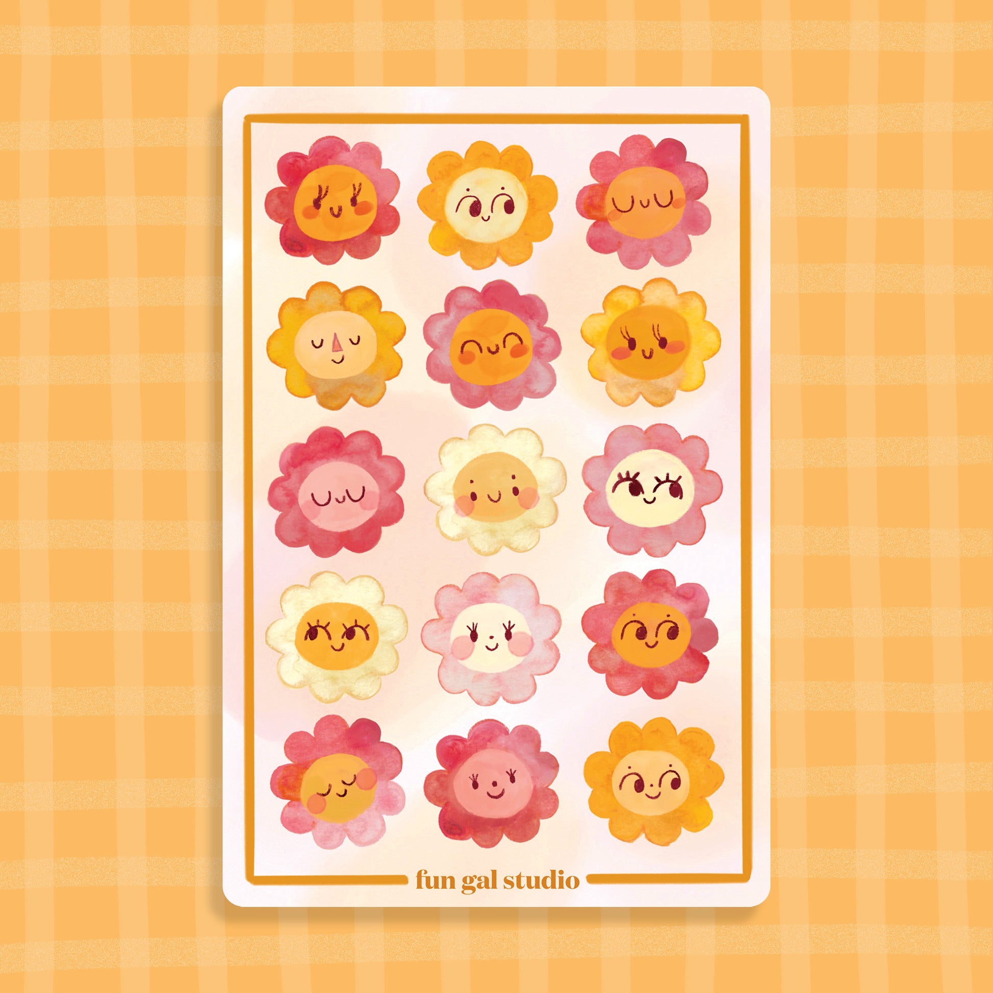 A sheet of happy-faced flowers for sticking anywhere that needs some extra joy.