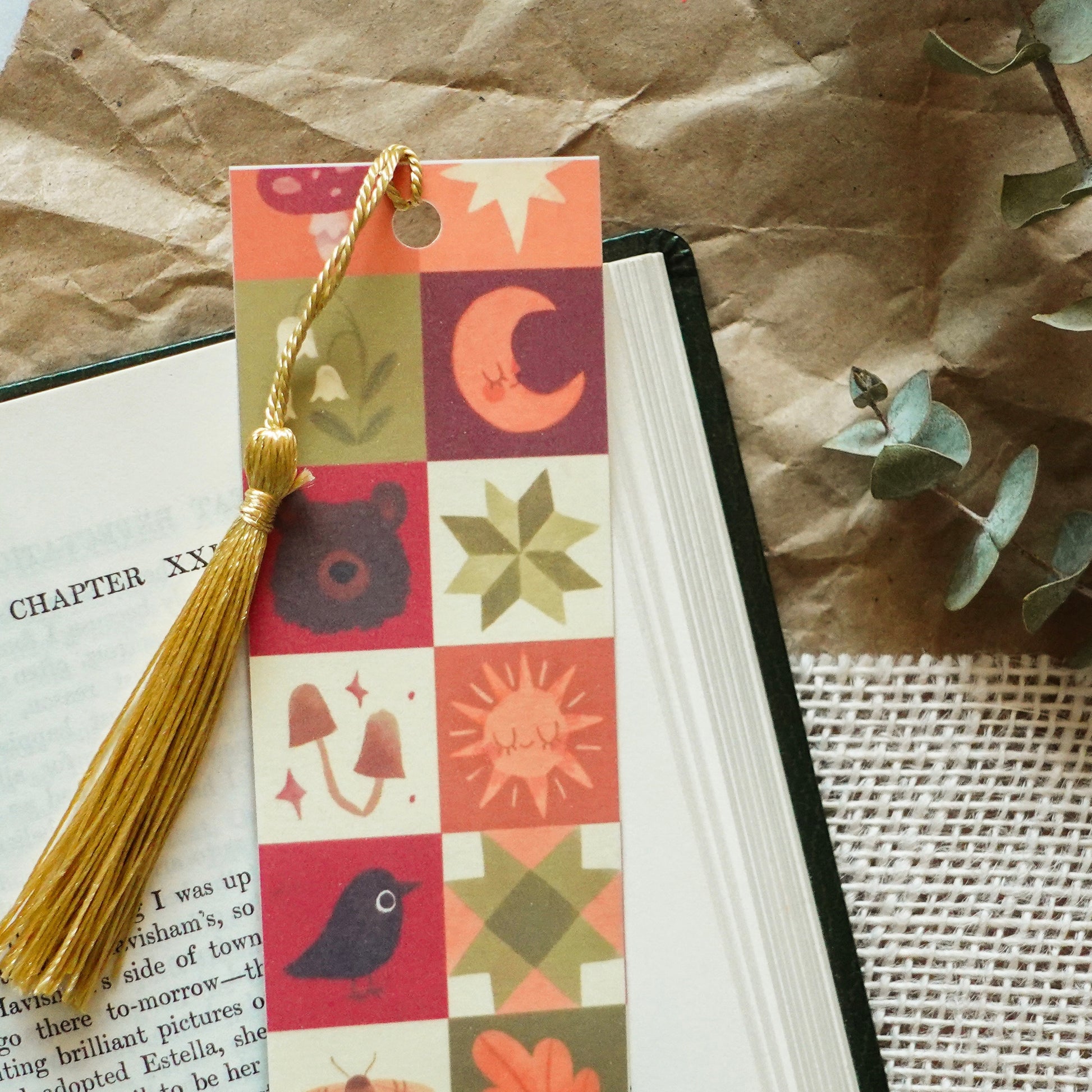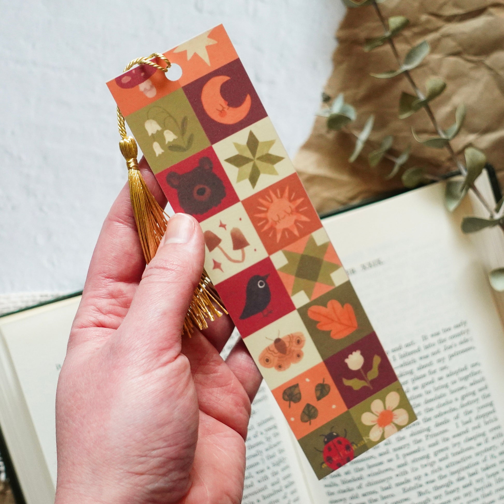An earthy, naturey bookmark with a collection of sweet forest critters. A great gift for a nature or animal lover.
